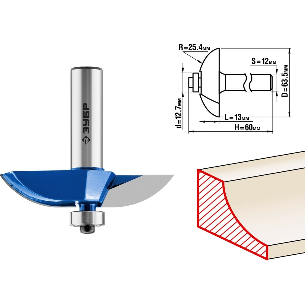 ЗУБР 63.5 x 13 мм, радиус 25.4 мм, фреза фигирейная №2, Профессионал (28761-63.5)