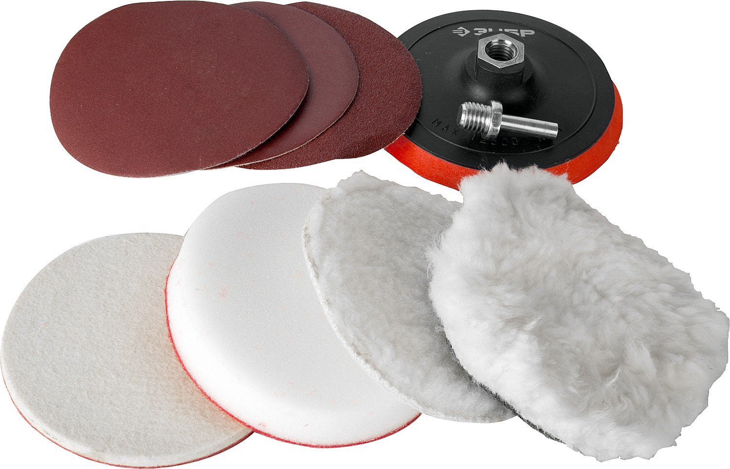 ЗУБР 7 шт, 125 мм, набор насадкок полировальных для дрели/УШМ (3591-125-H7)