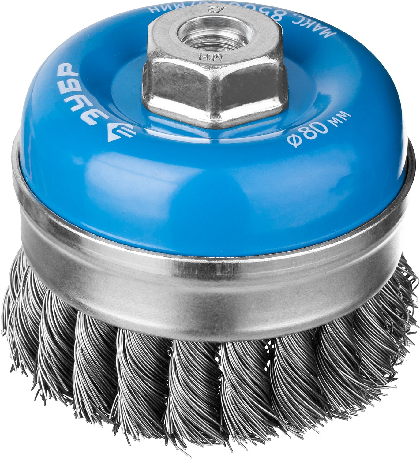 ЗУБР 80 мм, жгутированная стальная проволока 0.5 мм, усиленная чашечная щетка-крацовка для УШМ, Профессионал (3527-080)