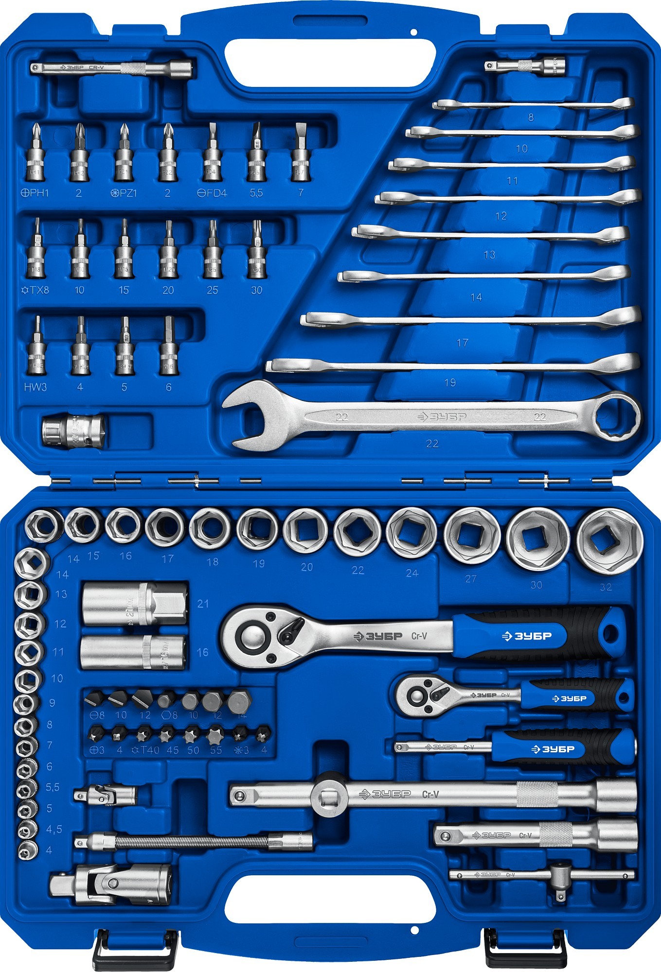 ЗУБР А-82, 82 предм.,(1/2_ + 1/4_), универсальный набор инструмента, Профессионал (27635-H82)