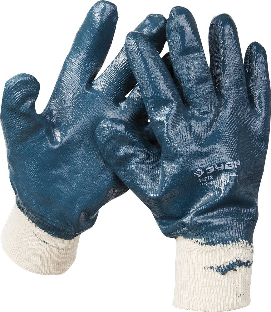 ЗУБР HARD, L (9), с манжетой, маслобензостойкие, износостойкие, перчатки с нитриловым покрытием, Профессионал (11272-L)