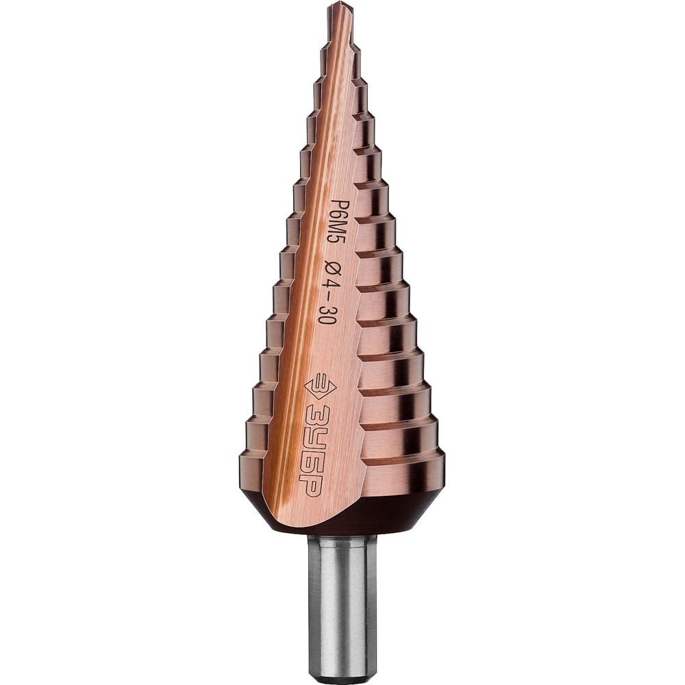 ЗУБР Кобальт, 4-30 мм, 14 ступеней, сталь Р6М5, кобальтовое покрытие, ступенчатое сверло, Профессионал (29672-4-30-14)