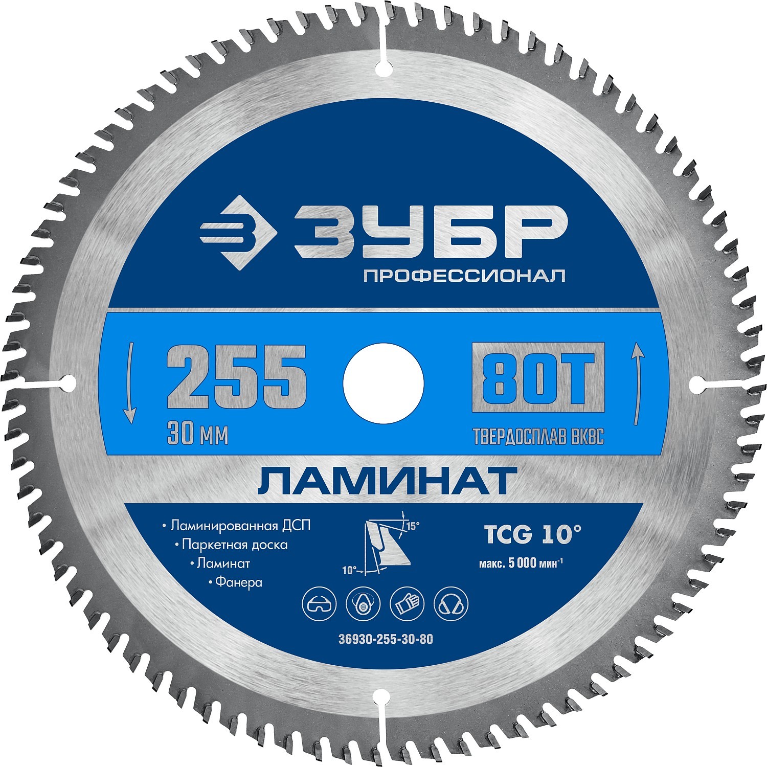ЗУБР Ламинат, 255 х 30 мм, 80Т, пильный диск по ламинату, Профессионал (36930-255-30-80)