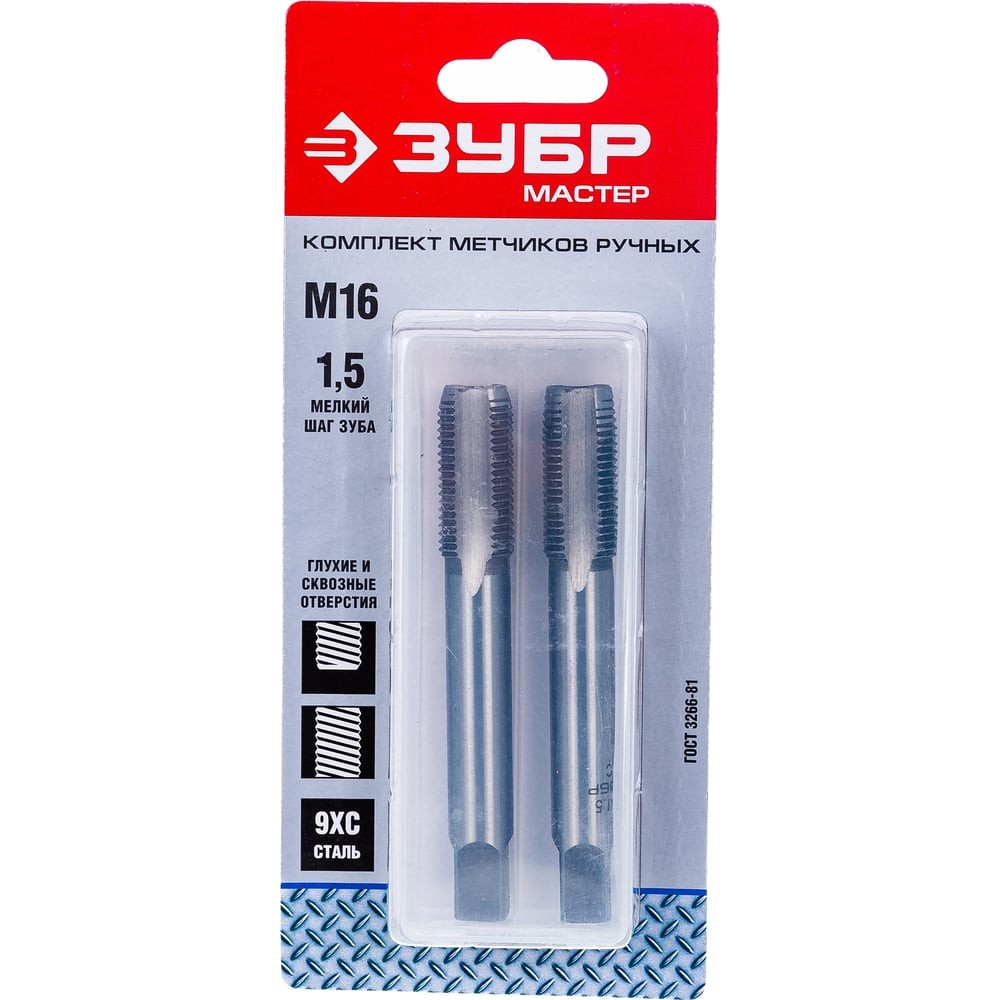 ЗУБР М16 x 1.5 мм, сталь 9ХС, комплект ручных метчиков (4-28006-16-1.5-H2)