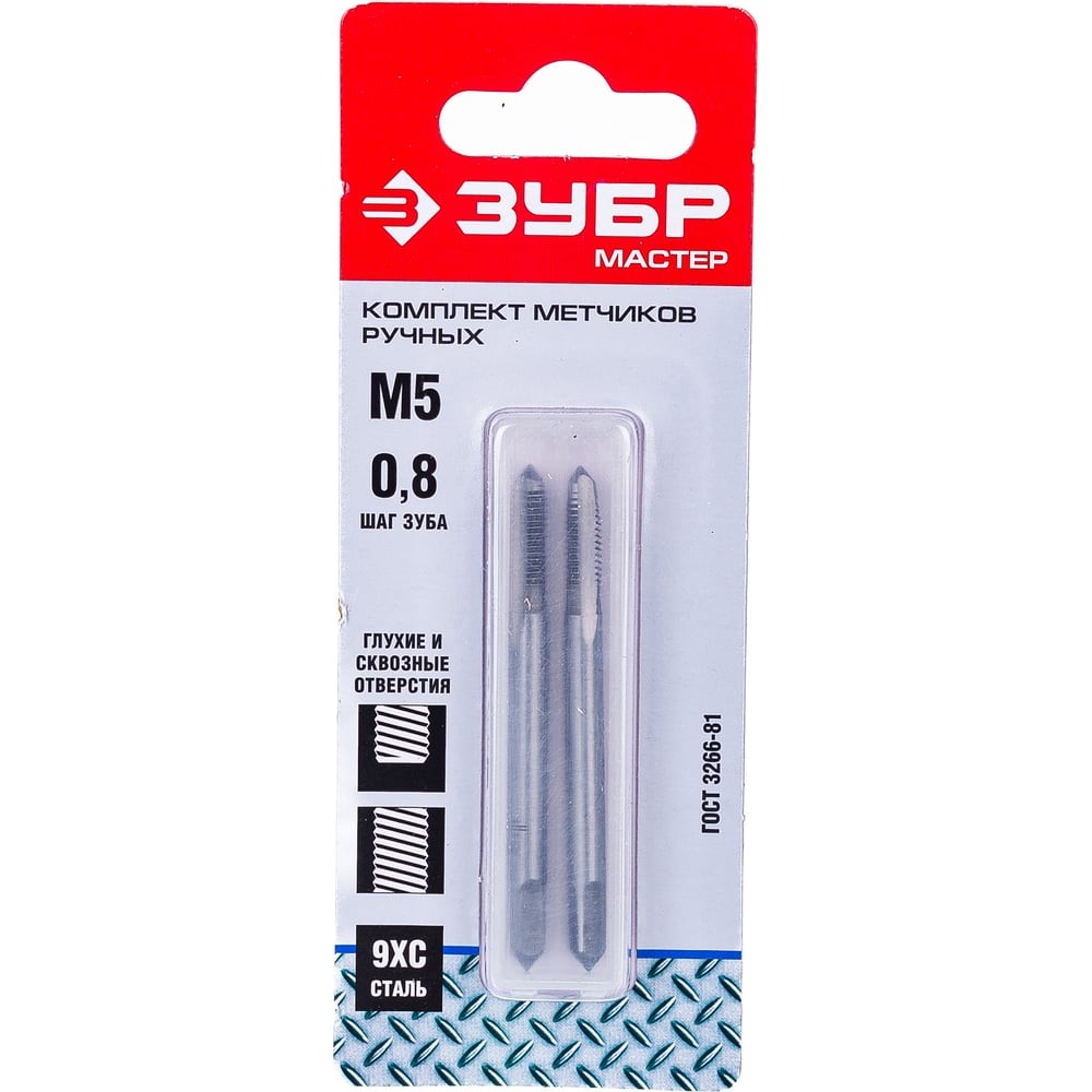 ЗУБР М5 x 0.8 мм, сталь 9ХС, комплект ручных метчиков (4-28006-05-0.8-H2)
