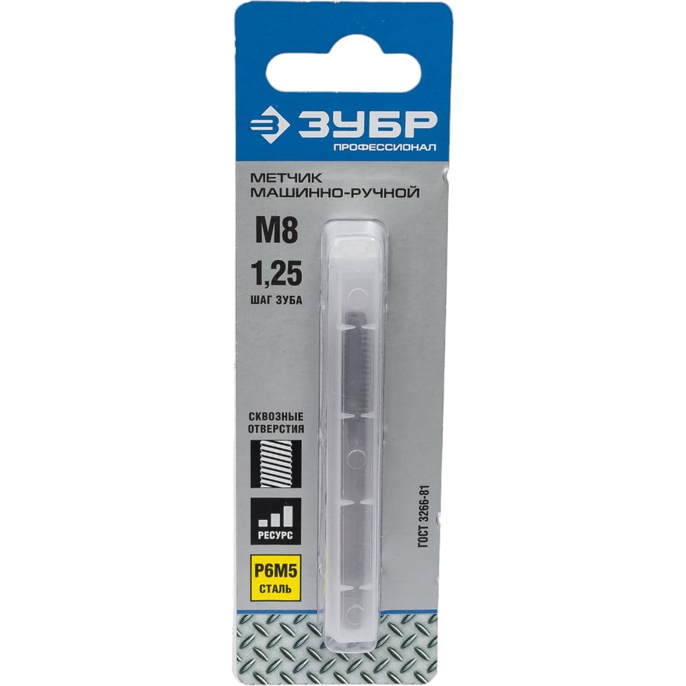 ЗУБР М8 x 1.25 мм, сталь Р6М5, метчик машинно-ручной, Профессионал (4-28003-08-1.25)