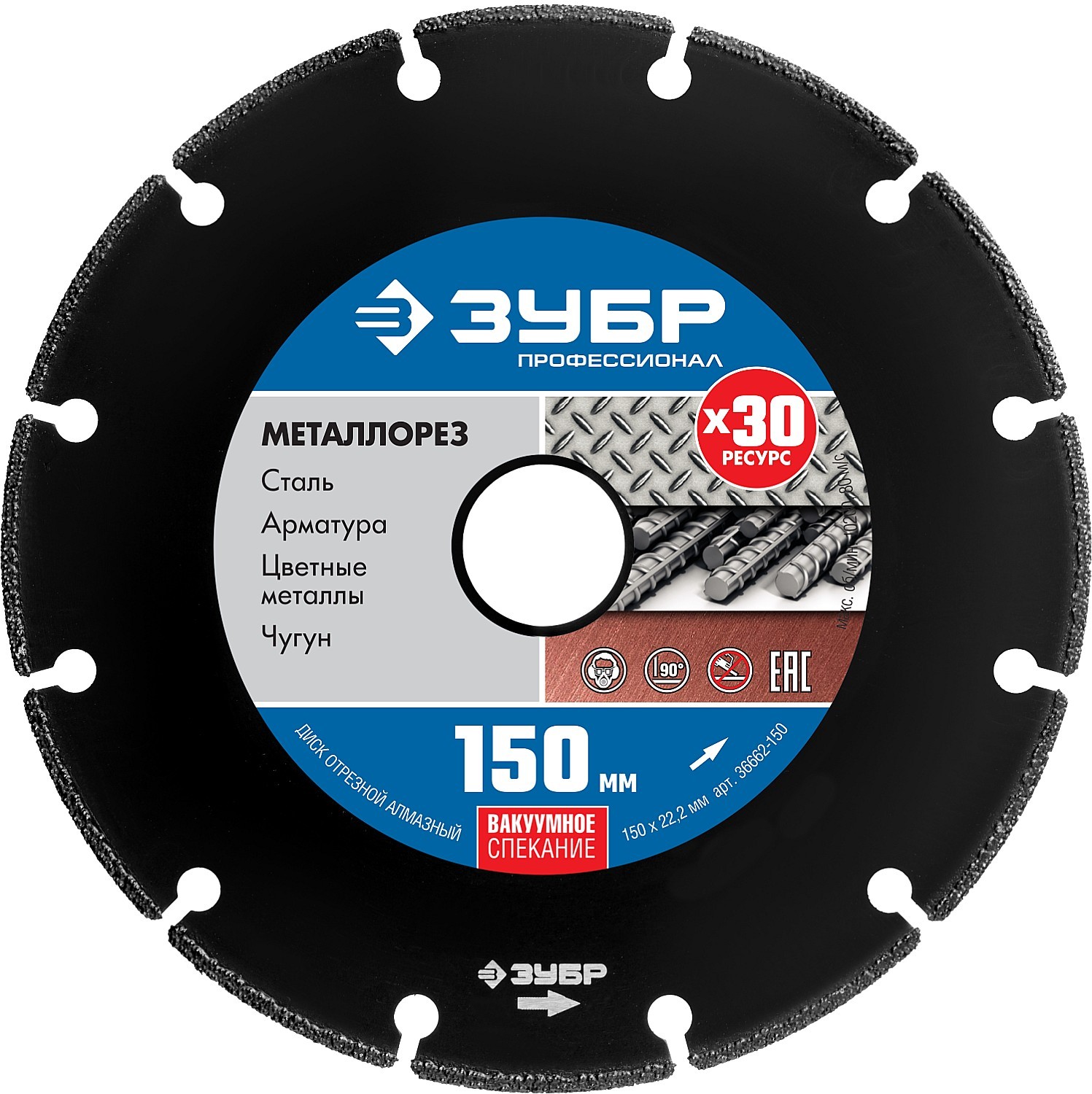 ЗУБР МЕТАЛЛОРЕЗ 150 мм, вакуумное спекание, алмазный диск по металлу, Профессионал (36662-150)