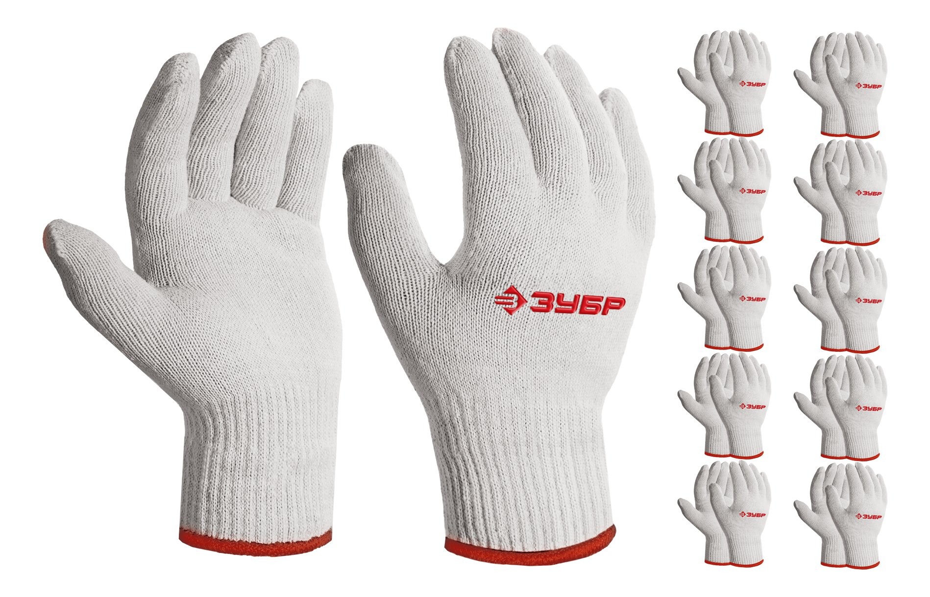 ЗУБР ОПТИМА, S-M, х/б перчатки без покрытия, 10 класс, 10 пар (11446-M10)