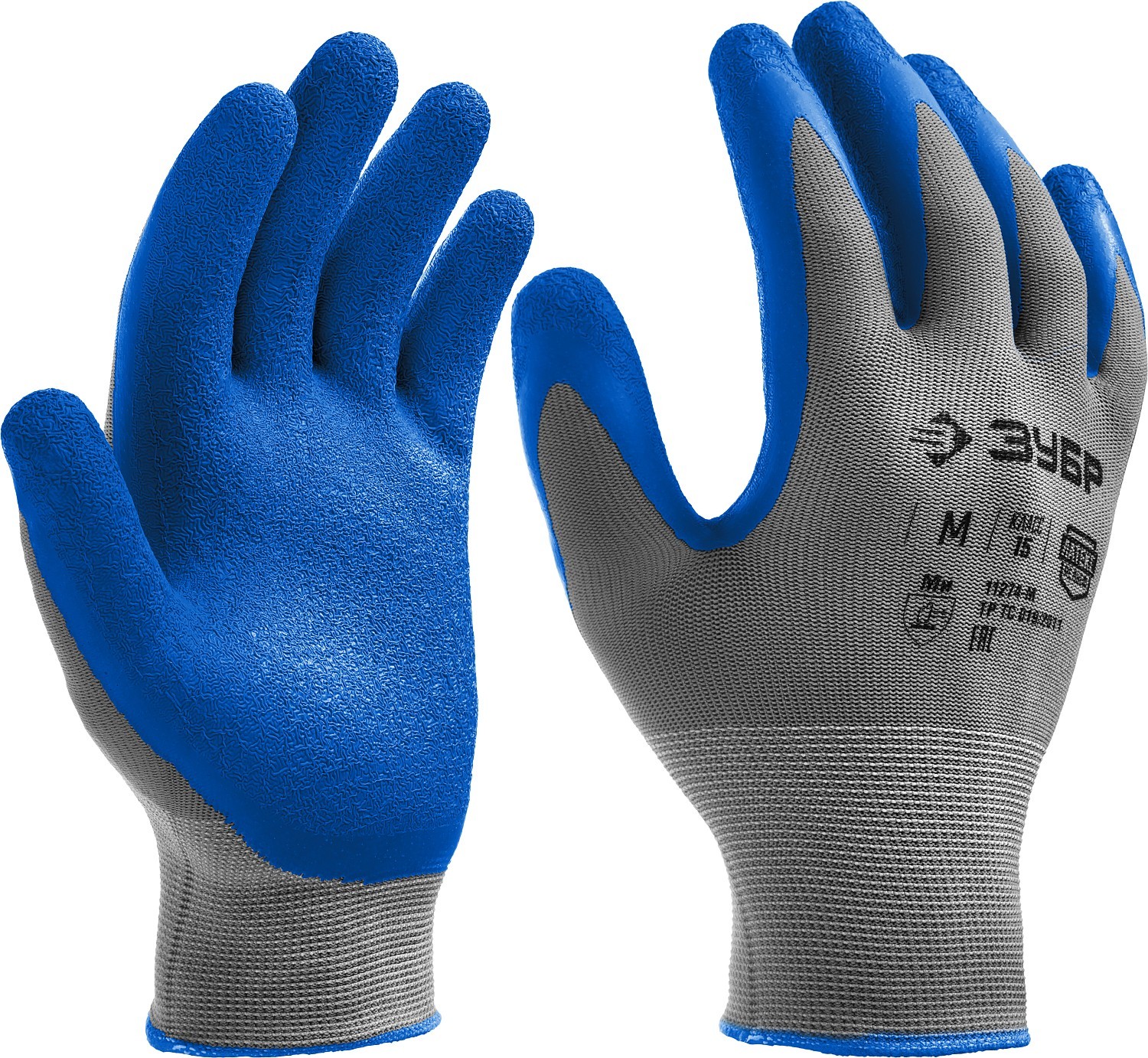 ЗУБР РЕЛЬЕФНЫЕ, XL (10), перчатки с тонким рельефным латексным покрытием, противоскользящие, 15 класс, Профессионал (11274-XL)