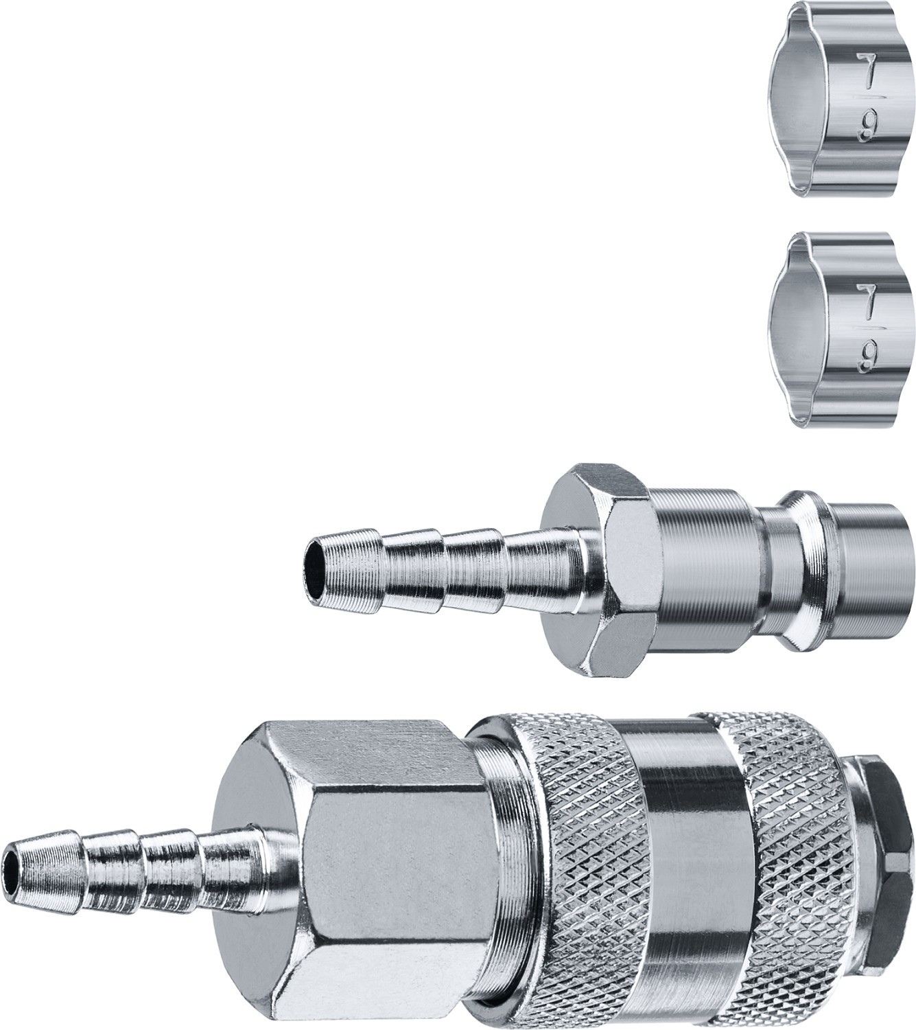 ЗУБР (штуцер _елочка_, 6 мм - рапид муфта) + (рапид штуцер-штуцер _елочка_, 6 мм) + (обжимные хомуты 2 шт), набор, Профессионал (64920-06-H)