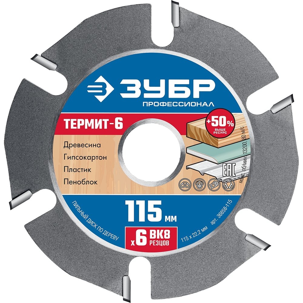 ЗУБР Термит-6, 115 х 22.2 мм, 6 резцов, для УШМ, усиленный, пильный диск по дереву, Профессионал (36858-115)