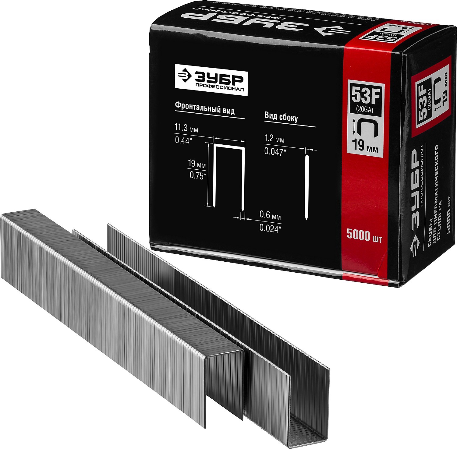 ЗУБР тип 20GA (53F/D/056) 19 мм, 5000 шт, скобы для степлера, Профессионал (31950-19)