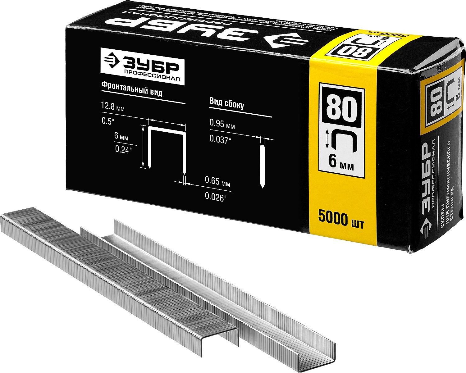 ЗУБР тип 21GA (80/Pr A/Senco AT) 6 мм, 5000 шт, скобы для степлера, Профессионал (31880-06)