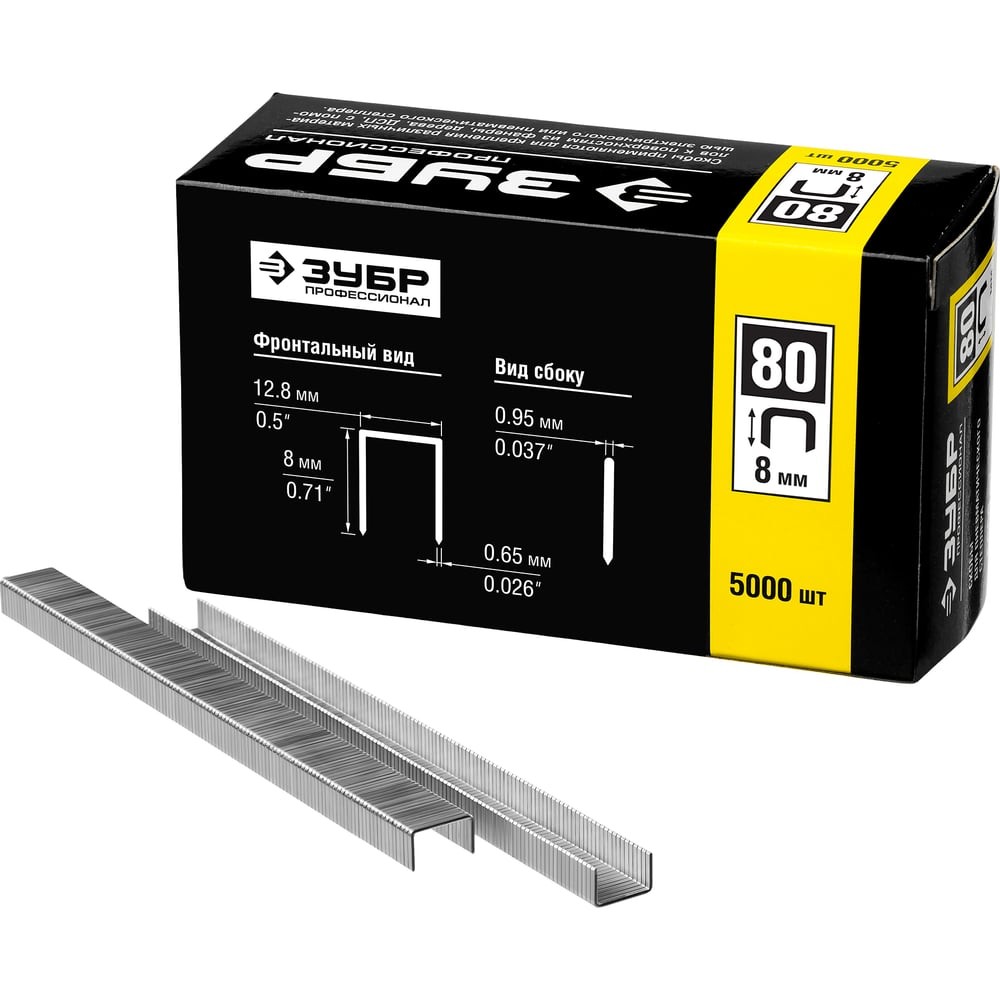 ЗУБР тип 21GA (80/Pr A/Senco AT) 8 мм, 5000 шт, скобы для степлера, Профессионал (31880-08)