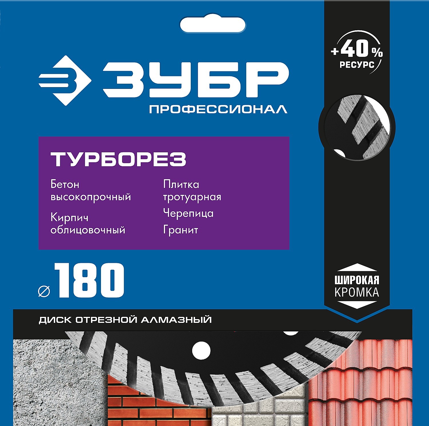 ЗУБР Турборез, 180 мм, (22.2 мм, 10 х 2.6 мм), сегментированный алмазный диск, Профессионал (36652-180)