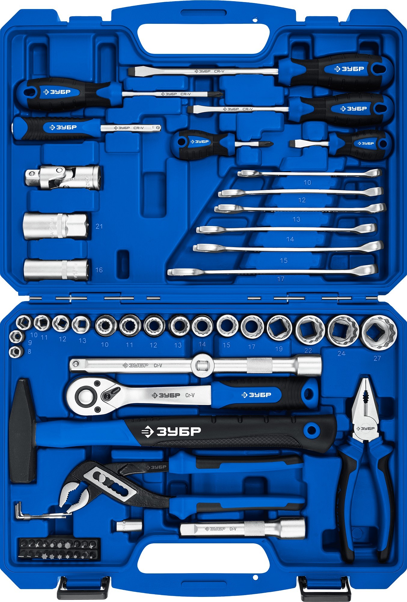 ЗУБР Универсал-63, 63 предм., (1/2_+ 1/4_), универсальный набор инструмента, Профессионал (27670-H58)