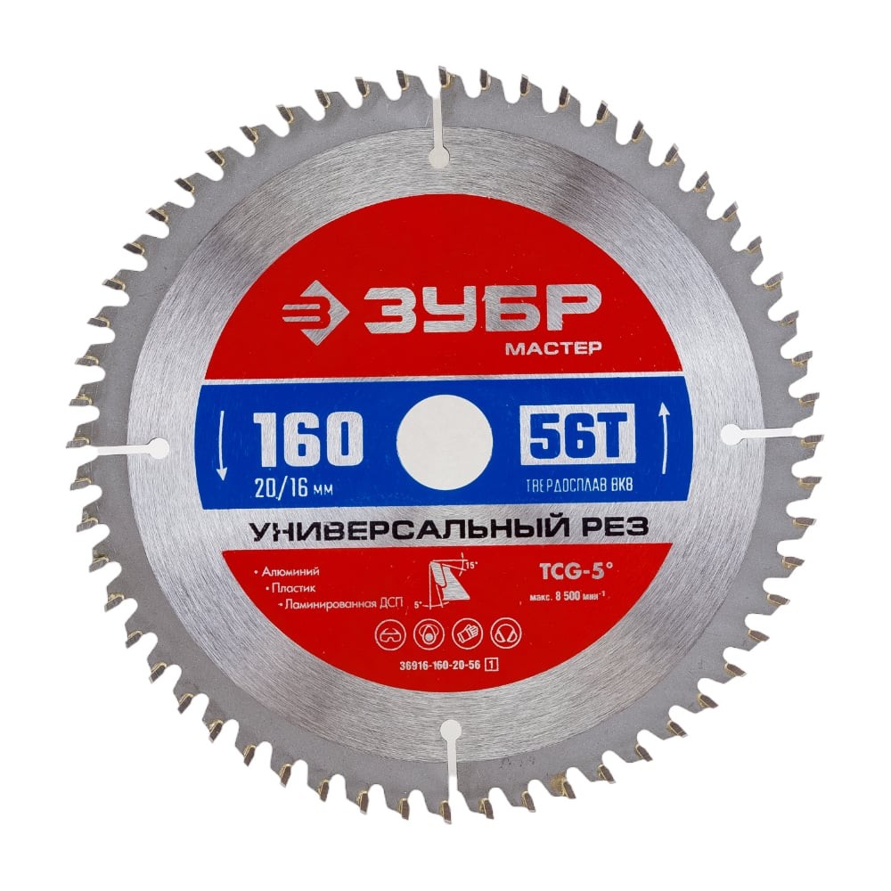 ЗУБР Универсальный рез, 160 x 20/16 мм, 56Т, пильный диск по алюминию (36916-160-20-56)