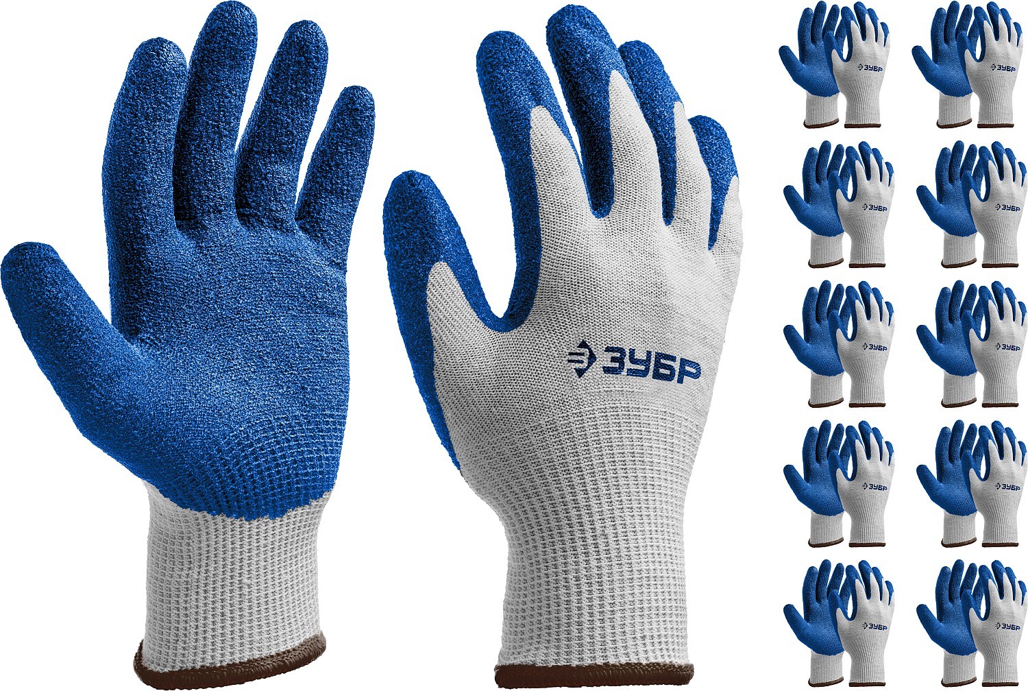 ЗУБР ЗАХВАТ, L-XL, х/б перчатки с текстурированным нитриловым обливом, повышенная износостойкость, 13 класс, 10 пар, Профессионал (11457-K10)